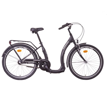 Mestský bicykel s unikátnou zníženou konštrukciou vhodnou pre ľudí so zníženou pohybovou schopnosťou, odľahčený rám zo zliatiny hliníka AL6061, nastaviteľný predstavec, predná brzda V-Brake, zadná protišľapná, dvojstenné ráfiky s vysokou pevnosťou, kompletná výbava na cestnú premávku.