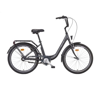 Mestský bicykel veľkosti 24" s ľahkým hliníkovým rámom s trojrýchlostným nábojom SHIMANO NEXUS, rám AL6061 TIG, predná brzda V-Brake, zadná protišľapná, radenie rukoväťou, nastaviteľný predstavec, kompletná výbava pre cestnú premávku.