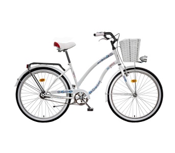 2" plášte obuté na hliníkových ráfikoch. Výbava bicykla je rozšírená o predný košík, nosič, blatníky,